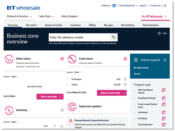 Business Zone has been designed to save you time placing broadband orders, modifying assets and cancelling orders. By showing clear overviews of your orders and giving short cuts into the eCo Plus broadband order journeys, you'll make less clicks, speeding up your process.